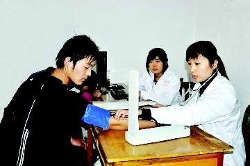 11月1日上午,临沂市2010年冬季正式开始,应征青年在人武部系统地进行了五官、心理测试等项目的检查。据了解,今年临沂市兵源质量明显高于往年,其中大部分是应届毕业生,体检结束后,将全面进入政审阶段。图为在兰山区民兵训练基地,应征青年正在体检。 本报记者 徐升 摄