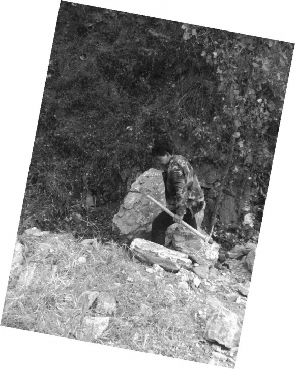 一路上,记者又看到五六个人或抱或扛,口喘粗气带着收集的石头向山下走去。