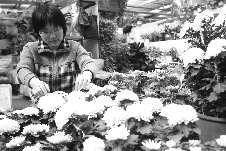 2日,在潍坊市虞河路花卉市场,—盆盆鲜艳的菊花吸引了市民的目光。据天天花卉的于红介绍,现在正是菊花的销售旺季,像狮子头、金麒麟、北京红这些品种比较受欢迎。临近农历的十月—,购买菊花准备扫墓的市民也很多,这也促进了菊花的销售。