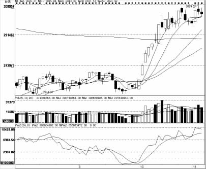 盘面观察,周三市场做空力量明显加强,热点相对零散,且强度较弱。发改委称10月全国31种食品近八成涨价,同时白酒再掀涨价狂潮等消息刺激,酿酒、农业、商业百货、食品等板块走势趋于活跃。此外,金融、地产无疑是周三市场的定海神针,尤其是金融板块逆势逞强,避免了股指重心大幅下移的窘状。