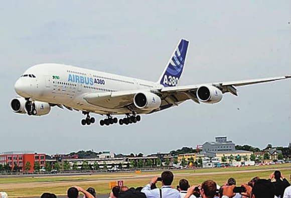 目前,全球载客量最大的客机是空中客车A380,它刷新了747-400保持的全世界载客量最大飞机的纪录。A380是欧洲空中客车工业公司研制生产的四发550座级超大型远程宽体客机。2010年8月1日,中国首条A380定期航线正式启用,A380降落在北京机场。目前青岛机场还没有A380起降。