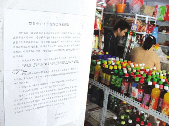 虽然控烟计划得到了绝大部分师生的支持,但校园内个别商家却出现了不同的声音。