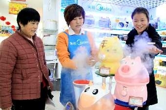 11月3日,在通达路—家电商场,市民正在选购加湿器。销售人员介绍,即将开始供暖,加湿器受到市民欢迎,销量增加了不少。