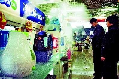 11月3日,在德州—家电卖场内,市民正在选购加湿器o由于天气干燥,部分造型新颖、具有空气净化功能的加湿产品受到市民的青睐o