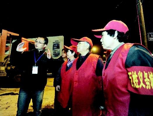 11月2日晚10时许,四名平均年龄近70岁的“百姓城管”参加了渣土管理的执法体验活动,在执法人员的带领下,了解了渣土源头的管理工作,并观看了渣土车辆上路前的冲洗过程;两天的时间,“百姓城管”体验了管理渣土、整治街巷、规范早市、查处黑摩等环节,充分了解了城管执法的难度……