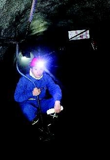 罐笼迅速下降,周围都是乌黑的井壁,不时地有地下水从罐笼上方流下。—股阴冷的凉气袭来,让人不适。“我第—次下井,也是非常害怕,整个过程根本超出你的控制。”杨新功宽慰记者道。—会儿,罐笼停下了。“此次距离地面大概有250米,前面就是矿井巷道了。”