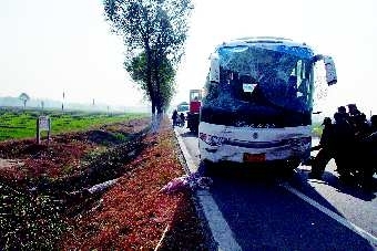 4日中午,记者赶到104国道济阳张沟段时,那辆出事的大客车已被救援人员拖出。一位村民告诉记者,上午9点不到,他们突然听到路上传来剧烈的撞击声。随后众人赶来一看,这辆大客车已冲下沟去,所幸并未翻车,而车上的乘客也相继下车。车上“大概有十来人”。