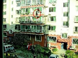 事发现场位于南全福小区二区一幢居民楼。早6点多,一名50多岁的女子突然将屋内阳台与客厅之间的门反锁,爬了出来,身体悬在四楼阳台上。“太危险了,有什么话下来再说。”围观的居民纷纷劝说女子。然而女子一只手扶着窗栏,一只手还在比划说着什么。