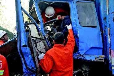由于大货车的驾驶室从车头到车尾被完全撞扁,严重变形,驾驶员的右腿被卡在座位与离合器踏板之间动弹不得,消防官兵使用液压扩张器在被困者周围进行扩张、剪切,将被困司机成功救出。