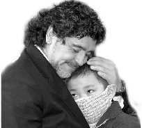 11月4日,马拉多纳亲吻—名病患儿童。当日,马拉多纳在北京与中国红十字基金会签约,出任“温暖大使”。新华社发