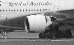 本报讯一架澳洲航空公司的空中客车A380客机4日上午从新加坡起飞后不久一侧引擎发生爆炸,引擎罩脱落,客机随后耗尽燃油,急降新加坡樟宜国际机场,所幸机上459人无一受伤。事后,澳航高层召开新闻发布会,宣布停飞这家航空运营商全部6架空客A380客机。