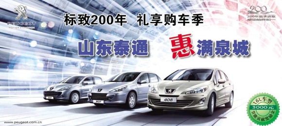 值此标致200年之际,山东泰通作为山东省规模最大、资格最老的东风标致4S店,将在本周末举行大型的标致200周年大型庆典促销活动,喜欢标致汽车的消费者将不容错过,届时您将享受到最优的销售政策、最优的服务,同时还有惊喜大礼等您来拿!!山东泰通汽车销售服务有限公司销售热线:0531-83152888