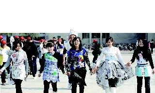 3日,在烟台大学,新闻系的同学开展了主题为“迎亚运,变废为宝低碳行活动”的展示活动,大家穿上废旧报纸和纸袋做成的服装,但这样的创意只能展览,离实用还是有差距的。