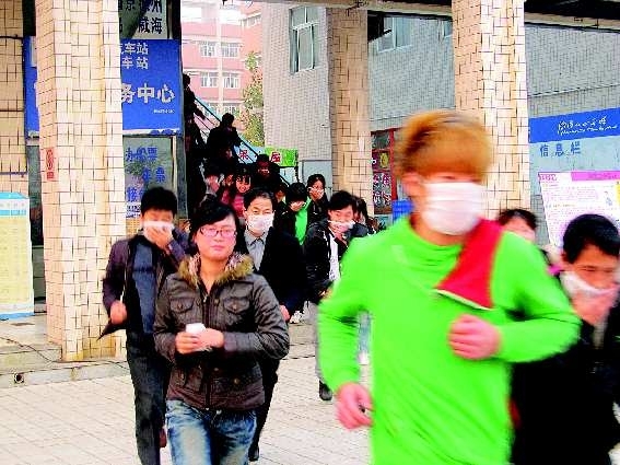 图为公司员工用湿毛巾、衣服等捂住口鼻,弯着腰紧张有序地从就近出口逃生o 本报记者 赵鑫 通讯员 尹振宇 王敬森 孔波 摄影报道