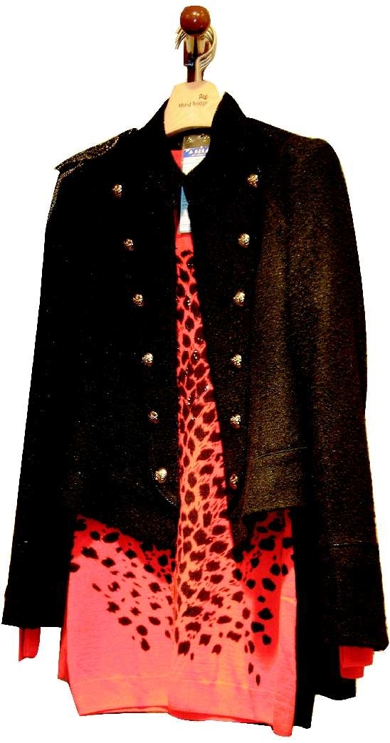 黑色休闲西装外套搭配红色黑豹纹毛衫(品牌:Mindbridge)