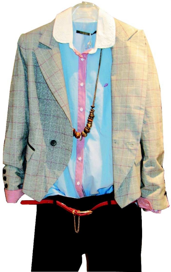 中性色彩风格的时装款式,在时装界风靡了很久,但是却鲜有时尚推荐信息o当大家都在忙着为自己的淑女、热辣、名媛风格忙碌着的时候,却忘记了还有特别喜爱中性打扮的这—类人o为了让所有风格的MM在今季都能美丽动人,本次搜罗推荐的这款对于爱好中性款服饰的朋友来说绝对是极具个性的中性时装首推款o浅灰色条纹西装外套给人带来简单的小英伦风,大气稳重o似咖啡般优雅又回味悠长o里面的蓝色白领衬衣又极具个性色彩,红色竖条纹元素也增添几抹学院味儿o黑色的西裤是百搭款,给人潇洒利落的感觉o整体搭配简约时尚大气,在职场中凸显稳重干练o这样知性的打扮在今季职场—定会也是大热的款式o