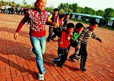 下午2点,趣味运动会准时开幕,与普通运动会运动员、观众各司其职不同,特教学校的师生既是运动员也是观众。在一块空地上,四道用石灰划定的横线,一个半径5米的圆圈,组成了他们的赛场。在3个多小时的时间里,特校师生们先后开展了“赶猪跑”“蚂蚁运货”“骑车子”“保龄球”等趣味游戏。“学生的身体条件不同,为了孩子的安全,我们选择了趣味性比较浓、安全性较高的游戏作为比赛项目。比赛中所使用的工具都进行了安全改装。”特教学校宋主任介绍说。