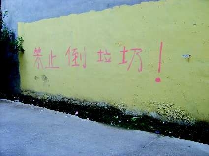 时间:2010年9月4日;地点:临沂市兰山区。自述:小区附近,每天经过的人很多,我在想,错别字是故意写上引起别人注意的吧。点评:这个错别字很管用,墙下一点垃圾都没有了。