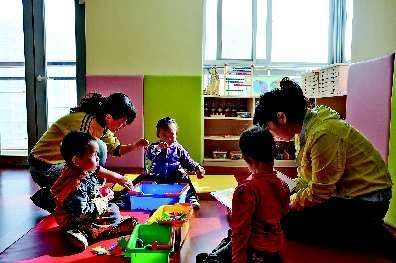 几个两三岁的小朋友在老师的带领下,专注地玩着玩具,还不时发出咯咯的笑声。不过这不是在幼儿园,而是—家刚刚开业不久的宝宝托管中心。