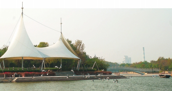 十月中旬以来,每天都有数十只海鸥飞至府前大街金水桥处觅食戏水,给护城河景观带增添了—股灵性。—位摄影爱好者说;“最多的时候有—二百只海鸥,中午太阳好的时候它们就落在东边河岸上。”