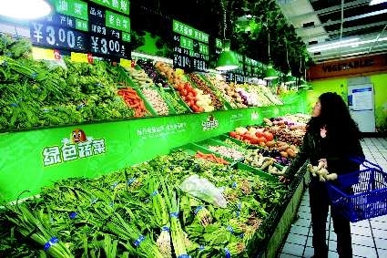 7日,在潍坊市中百大厦超市内,市民正在选购蔬菜。随着气温下降,各种蔬菜的价格也开始攀升。据销售人员介绍,目前各种叶类的蔬菜价格普遍较高,像油菜、春白菜、青蒜苗的价格每公斤都在6元以上,茄子、南瓜、黄瓜的价格也在每公斤5元左右。