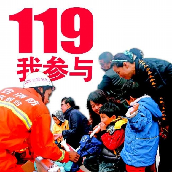 7日上午,烟台市消防支队在文化广场举行“119”消防宣传活动,许多父母带着孩子体验火场逃生,学习防护知识。