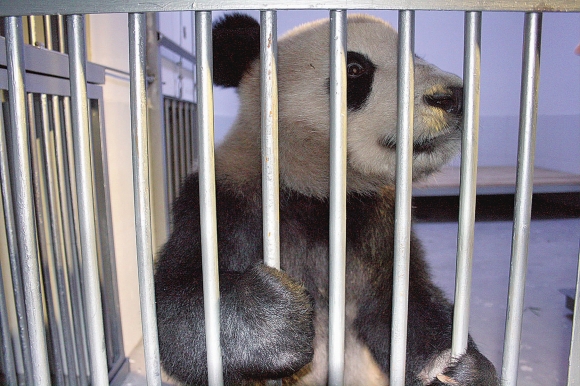 6日零时32分,长途跋涉近16个小时的大熊猫“竹灵”、“宁宁”到达了它们位于刘公岛森林公园的新家。刘公岛熊猫馆明日开馆,“优惠活动月”顺延,市民可前往一睹大熊猫风采。图为这对熊猫在新家“恭候”大家光临。