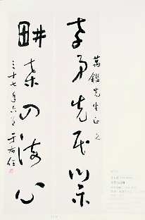 如前不久在北京某拍卖行拍卖并“顺利”成交的图①对联书作,就是一件不折不扣的“新仿”赝品。外行人乍一看此书法的外观,一定会误认为它就是于右任亲笔写的字,表面上它具有自由、奔放的于体字的惯常风范。但笔者一入眼就觉得此书法有些轻浮,不少字迹有些许“油”,这是于字真迹较少会出现的状态。因心中生疑,故笔者就去查阅身边的于右任书法集册,终于在一部该书家书法专集中将图①的母本图②找出来了。通过一真一伪两件书作对应细节的比较,现至少可以从以下三个方面看出图①伪作的破绽:(一)伪作中所有字的笔线在力量感和沉厚度上都有一些差距,所以它比母本图②显得“华而不实”,也就是上文提到的“油”和“轻”的视感;原作母本的笔线则很重实,有力透纸背的笔功,且在粗犷奔放之中带有拙意,笔性理想,意趣非常高妙。(二)图①对联中大部分行笔固然算顺畅,但是字的总体笔势却有“笔连气断”之弊端,具体说就是字与字之间的呼应与过渡状态不如图②自然与理想。如上联的“正之”、“先”、“民”、“业”及下联的“海”、“心”这些字,其单字个别笔画和结体与笔线前后走势看上去就不能说很正常———笔的运行痕迹有点做作和别扭,此便是“仿”字而非署名者亲笔的突出征象。(三)经在拍卖预展时近距离观察,笔者发现伪作墨的成色上通篇偏于黑亮,毫无“包浆”,这是任何真实性的书写达62年之久的书法作品少见的“成色”,而虽是影印件的图②原作其墨色已是暗得无火气相,或者说在“墨相”上一真一伪之间差异也是不小的。
