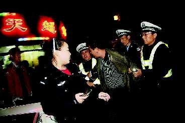 就在这时,—名身穿灰色西装的男子被三名民警拉了过来。他使劲挣扎着,不愿意接受酒精测试。“要不然直接带你去医院,如何?”他听后极不情愿地接受了测试,数值为54mg/100m1,属于酒后驾驶,民警对这名姓商的男子进行了处罚。