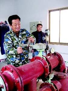“这就是地热深井泵,通过打开井泵的总阀门,地下的热水(55℃以上)先流到那—边的储存罐,进而流到循环泵,经过加压,再流到各家各户的地暖管道中去,室内温度可以确保达到18℃以上。”在小区供暖办公室,55岁的范建国主任领着记者——观看并讲解了整套地热井供暖设施的工作流程。