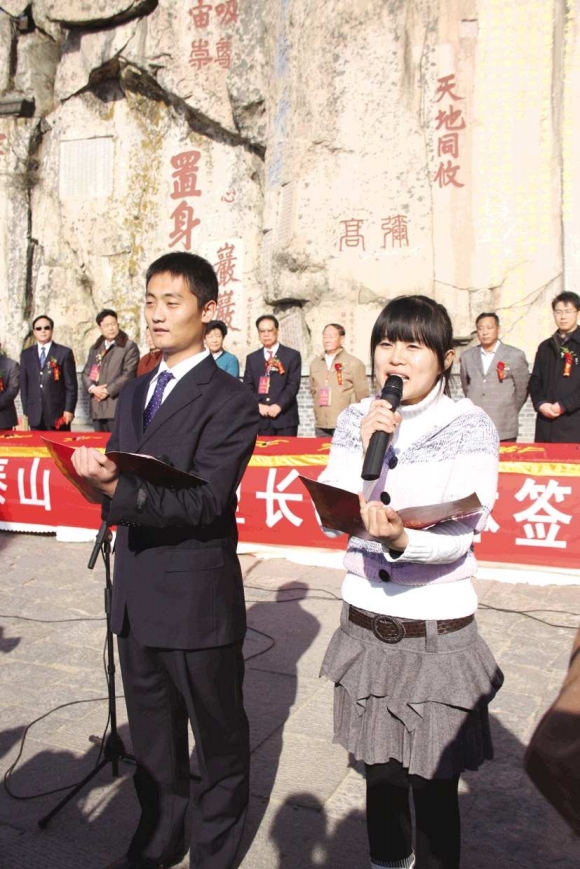 “我们主张,在致力于中华民族五千年传统文化薪火传承的同时,始终坚持社会主义先进文化前进方向,倡导和弘扬覆载万物、博大精深的‘泰山精神’。”主持人稍稍停顿,继续宣读道:“这就是‘宽厚博大的包容精神、天人合一的和谐精神、勇攀高峰的进取精神、顶天立地的担当精神。’”