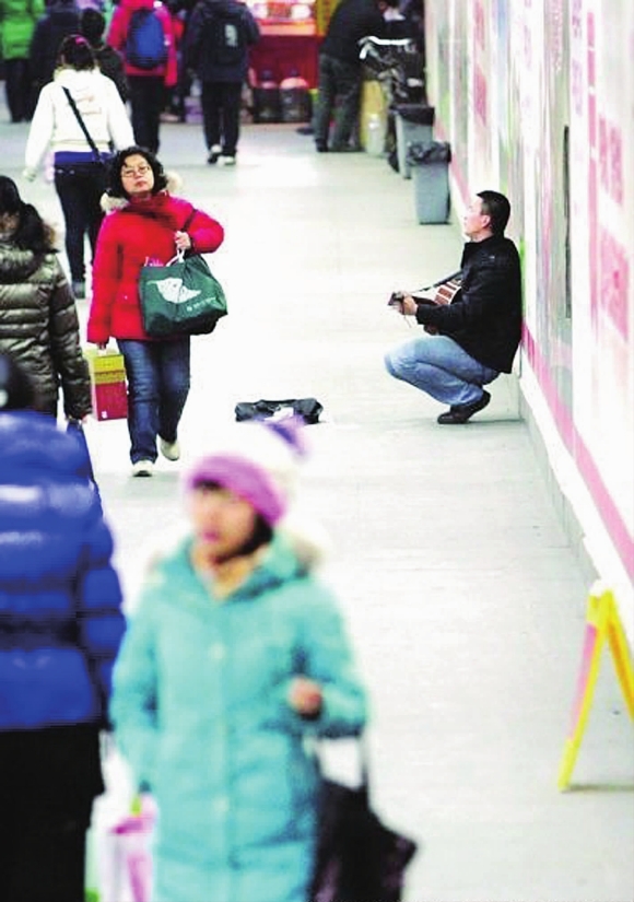 2003年的一天,他背着吉他来到地下通道,看着人群来来往往,他稍一迟疑,拿出吉他,在地上铺张报纸。背靠着墙壁,他开始自弹自唱,旁若无人。