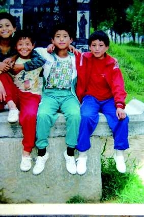楼村。本报特派记者 邱志强 摄 右图:10岁时在宋江武校习武的袁晓超(右一)。 (资料片)
