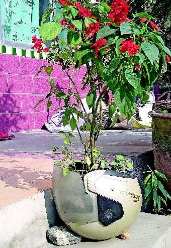 到了废弃的头盔里