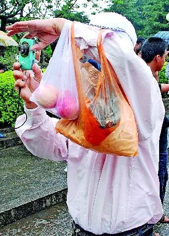 自述:一位游客挎着两袋子物品,仍然兴致勃勃地拍照
