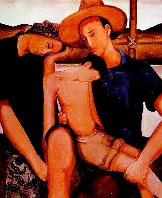 创作于上世纪30年代的油画《地之子》是庞薰琹有感于当年江南大旱、民不聊生而花了几个月时间创作的一幅作品,这本是一幅油画,曾于1934年在第三次决澜社作品展览中展出,是他最重要的代表作之一,本次展出的是1934年用水彩画的初稿。他采用简化和拉长的形体描绘,大面积平涂,以平面、装饰的风格来表现朴实和力量。他吸收外来形式,却加入了中国人的情感、神韵,包括造型和线条的运用。此幅作品正是他“中国学术现代化,外国学术中国化”主张的具体体现。
