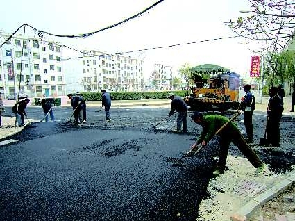 14日12时许,胜东社区基建科组织工程队正对辛兴小区进行路面改造。据介绍,截至当时18时,该工程队已完成对小区5000平方米路面的沥青铺设工作。