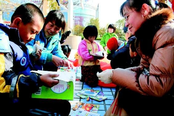 “小朋友,我的打气筒是新的,你的书是旧的,我亏本呀。”打气筒的主人小美故意为难他说,要他回家找个新的东西来换。乐乐回头看看妈妈,开始想主意。“书是旧的,但知识很有用,姐姐你一点都不吃亏。”小家伙的话把大家逗乐了。小美说,自己开始有点为难,她家里没有小孩,换回童话书没有用处,但是看到小朋友很真诚很可爱,就换了。