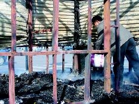 “烧得只剩下铁架子,上面的不锈钢都被卸走了,可能是有人拿去卖钱”。现场一位民警说,警方的综治部门正在调查起火原因。