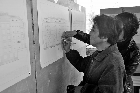 12日,高区田和街道办事处仁柳庄社区的182户居民来到居委会,挑选回迁房的结构户型。去年,仁柳庄实施182户一次性整体和谐拆迁,回迁安置工程“仁和佳苑”开工建设,一期的10个楼盘于今年11月完工,并顺利交付使用。据介绍,居民确定户型和房号后,仁柳庄居委会将根据居民意愿尽快组织室内装修,争取春节前让居民全部搬进回迁新居。
