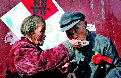 “今天是陈玉宣和王秀英老人结为秦晋之好的大喜日子,我们向两位老人表示衷心祝福,祝愿你们在今后的岁月中,白头偕老,幸福安康!”院长翟祥东主持了典礼。新郎和新娘饱经风霜的脸上此时此刻露出了甜蜜和幸福。