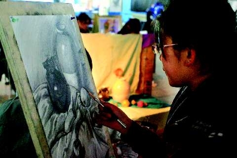 16日,在潍坊市王金明画室,高三的艺术生正在进行素描练习。山东省2011年艺术考试本月20日开始报名,考试越来越近,考生都卯足了劲练习。陈洪鹏老师说,今年半路学美术的学生少了,学生的专业素养都比较高。