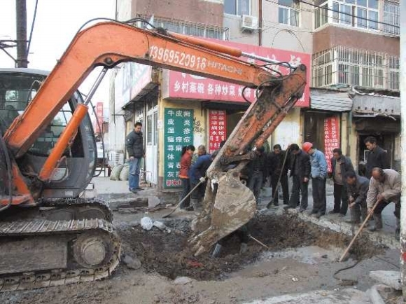 15日下午,昌润供热公司的施工人员,对卫育路一处漏水的暖气管道抢修。据了解,管道故障不会对附近居民的用暖造成影响。