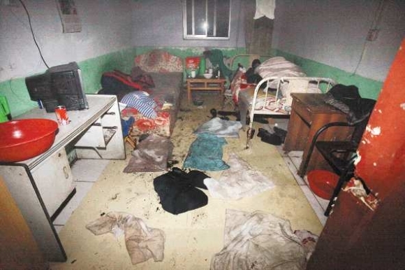 “着火的是25号房间,受伤的老太太被急救车拉走了。”一位坐在房间外面的老人说。记者找到25号房间,房间内散发着一股刺鼻的烟味,地面上有很多水,还散落着几件衣服,两张床上的棉被也被水浸湿了地面上还有一些燃烧过的灰烬。