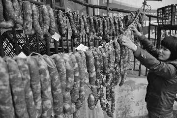 11月16日,在永吉路一处小区内,市民刘女士正在晾晒刚刚灌好的香肠。眼下还没有进入腊月,但却是灌肠制作的最佳时间。“这个季节灌的肠不容易坏,上干也快,大约一个周的时间就能吃到香喷喷的灌肠了。”据了解,现在的价格每公斤30元左右,很多市民争相灌制尝鲜。