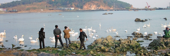 16日,荣成俚岛镇烟墩角村的百余只天鹅吸引了众多摄影爱好者前来拍摄。历年来,烟墩角村前的小海湾,因水质清澈、饵料丰富,受到天鹅们的青睐。每年11月份至翌年4月份,成千上万只大天鹅从西伯利亚、内蒙古等地成群结队来此栖息越冬。烟墩角的天鹅与人相处极好,人们甚至可以在1米距离内拍摄天鹅的活动,烟墩角也因此成为了各地天鹅摄影爱好者的天堂。