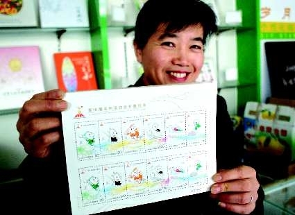 11月15日,临沂市邮政局工作人员正在展示《第16届亚洲运动会开幕纪念》邮票。目前广州亚运会各项比赛正如火如荼地进行着,以亚运会为主题的邮票开始受到集邮爱好者的热捧。