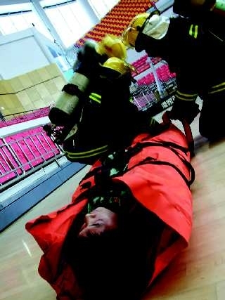 16日14时50分许,德州市体育馆篮球赛区由于观众席丢弃的烟头引发“大火”,浓烟滚滚,火势迅速向四周蔓延,一名工作人员由于扑救“火灾”疏散不及时而被困。其他工作人员立即拨打119报警电话,同时利用干粉灭火器控制“火势”蔓延。