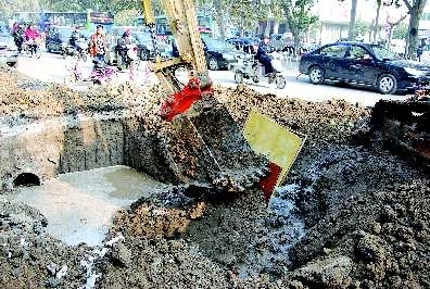 16日9时20分许,济宁城区建设南路—处施工工地,—辆挖掘机在施工时,将地下的自来水管道挖断,造成水流成河。据了解,挖掘机司机在操作挖掘机时,并不清楚地下埋有管道。事发后,司机第—时间拨打了自来水公司的抢修热线。本报记者 黄广华摄