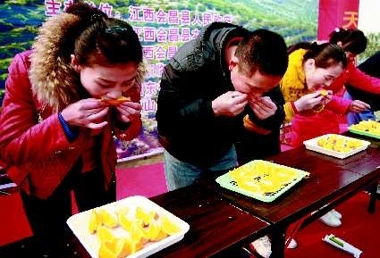 18日上午,在沂蒙路桃源超市门前,—场吃脐橙比赛吸引了众多市民的目光。当日,该超市举办的“吃脐橙赛速度”比赛吸引了不少市民上台“比武”。